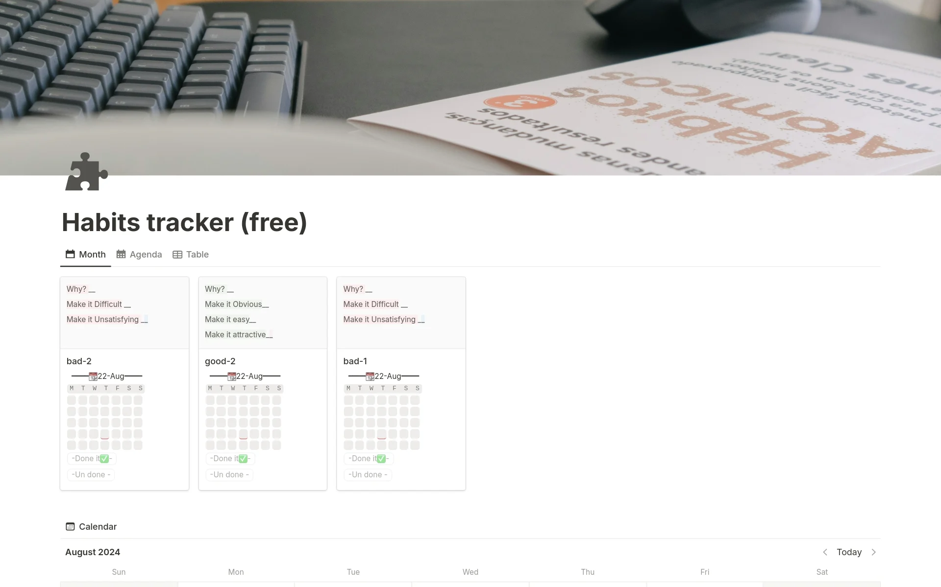 Designed to seamlessly integrate the book's transformative concepts into your daily life, this pack offers a collection of powerful templates. Evaluate your habits using the Habit Scorecard, set implementation intentions, leverage habit stacking techniques, track your progress with the Habit Tracker, and strengthen your commitment with the Habit Contract.