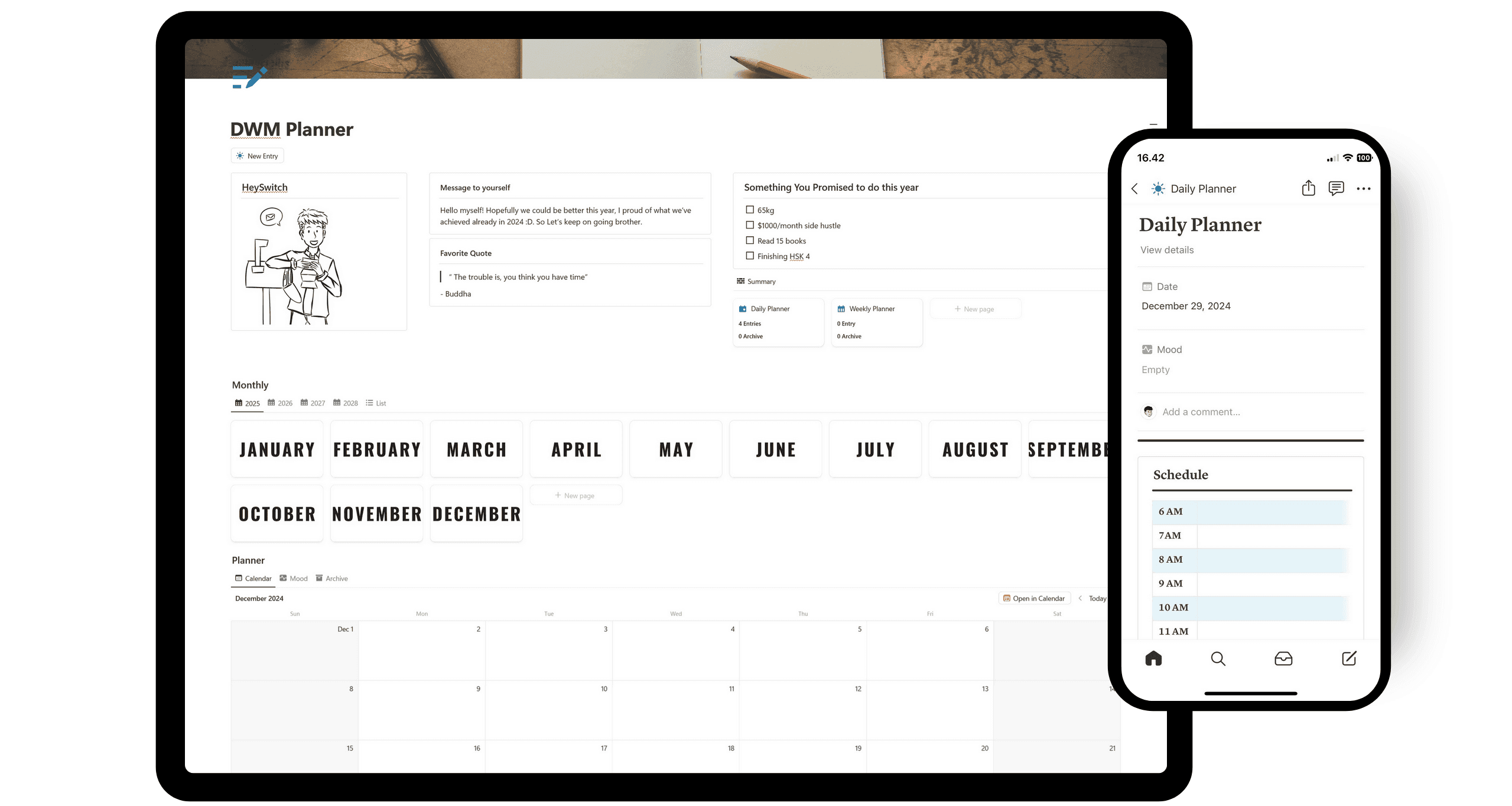 Goal Setting: The planner’s goal-setting tools keep you focused. You can define objectives, break them into actionable steps, and track your achievements. This approach boosts motivation and ensures steady progress toward your aspirations.