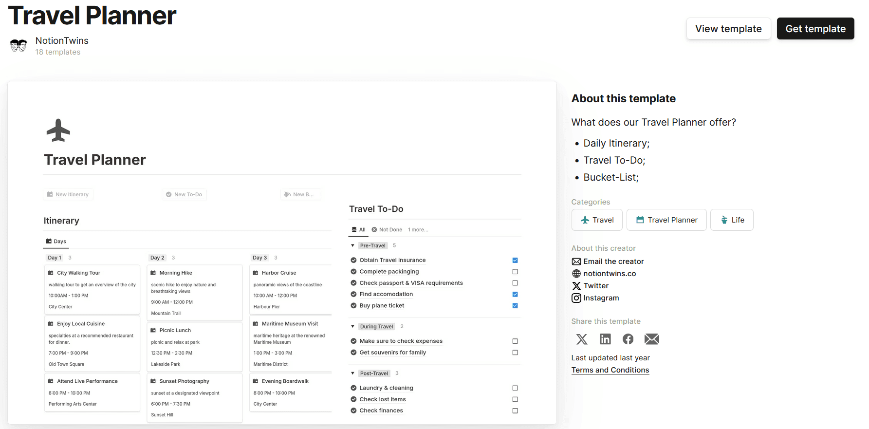 In 2025, optimizing your travel planning has never been more accessible, thanks to the top notion travel templates available. These templates simplify organizing trips, making it easier to manage every detail. Below, we explore the leading templates that cater to diverse travel needs, ensuring a stress-free planning experience.
