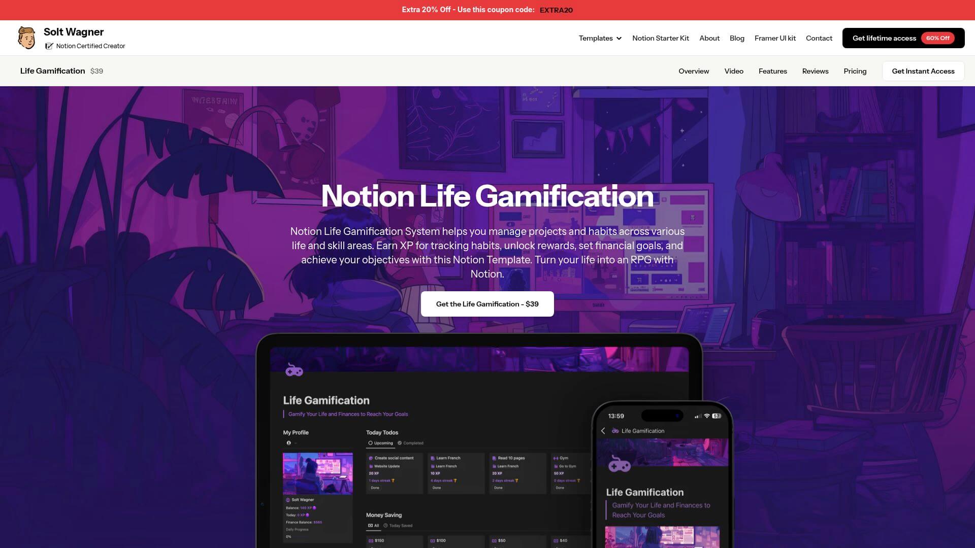 Transform your productivity tasks into engaging challenges with Notion Life Gamification. This template turns mundane chores into thrilling quests by incorporating habit tracking, XP rewards, and financial goal setting. Imagine leveling up your life just like a game, making each completed task feel like a victory. This template are both exciting and effective, ensuring that productivity is never boring.