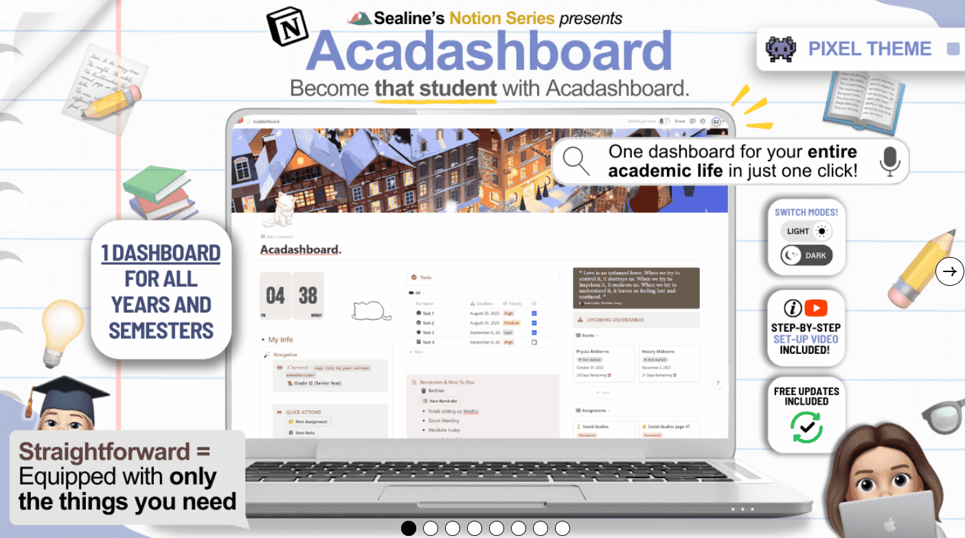 Sealine Aesthetic Acadashboard Notion Dashboard is a beautifully designed workspace that combines functionality with a sleek, modern aesthetic. Perfect for boosting academic, this dashboard offers a well-structured layout for an organized and visually pleasing Notion experience.