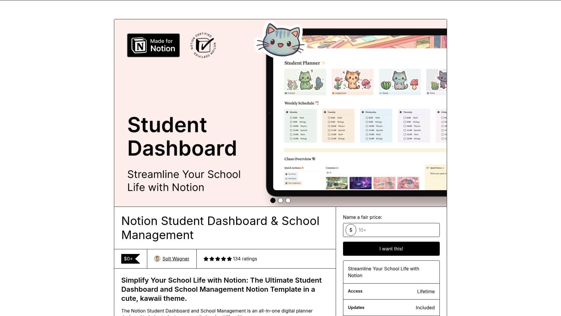 Designed with students in mind, the Notion Student Dashboard offers course management, assignment tracking, and a kawaii-themed interface. This template ensures that school life is not only organized but also enjoyable. With its vibrant design, keeping track of your academic life has never been so aesthetically pleasing. It's a great example of how "free notion templates" can be both functional and fun for students.