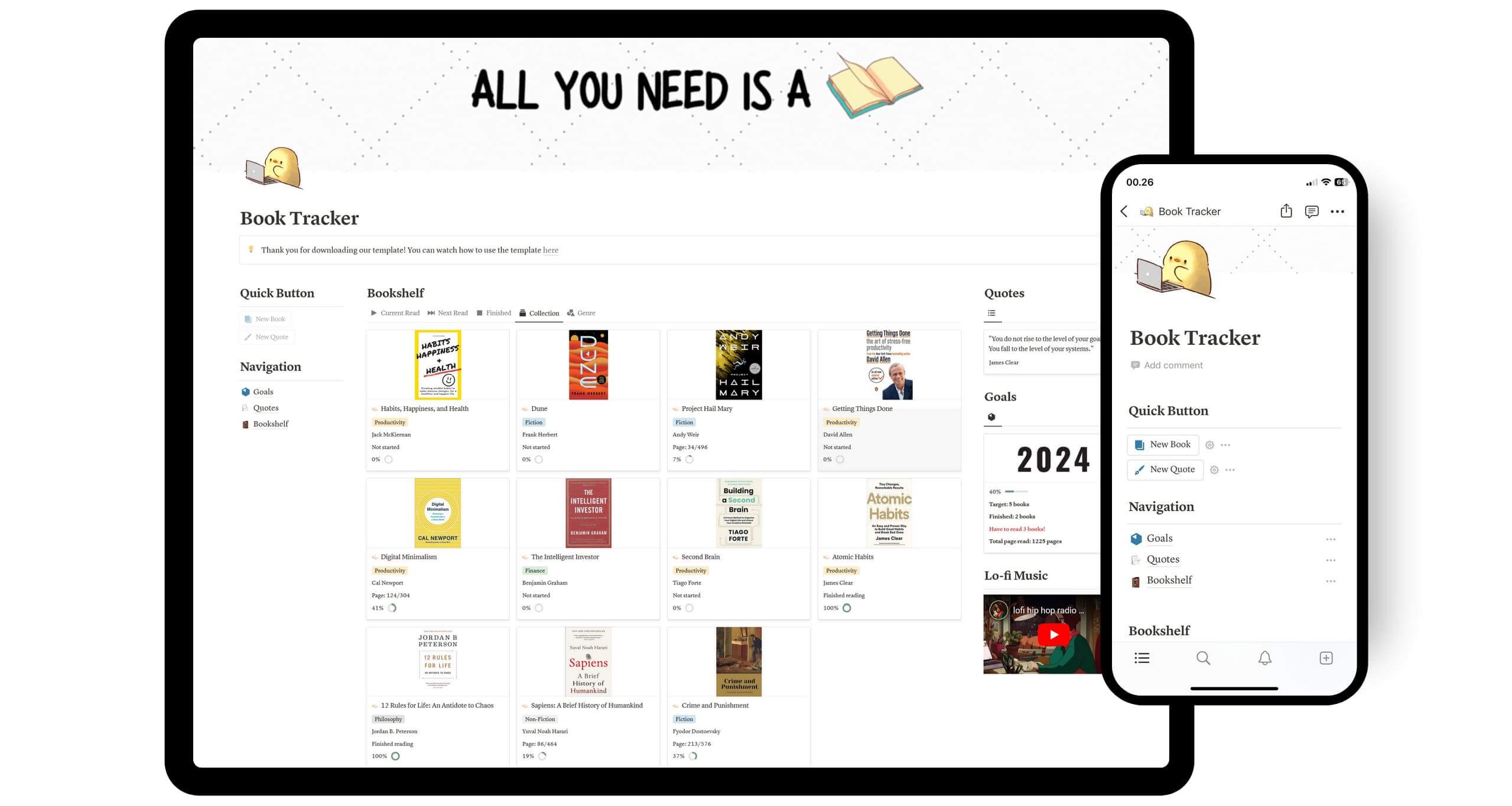 The HeySwitch Book Tracker is a beautifully designed free Notion template that helps you organize and track your reading journey. With sections for book lists, reading progress, notes, and reviews, this template makes reading more engaging and structured.