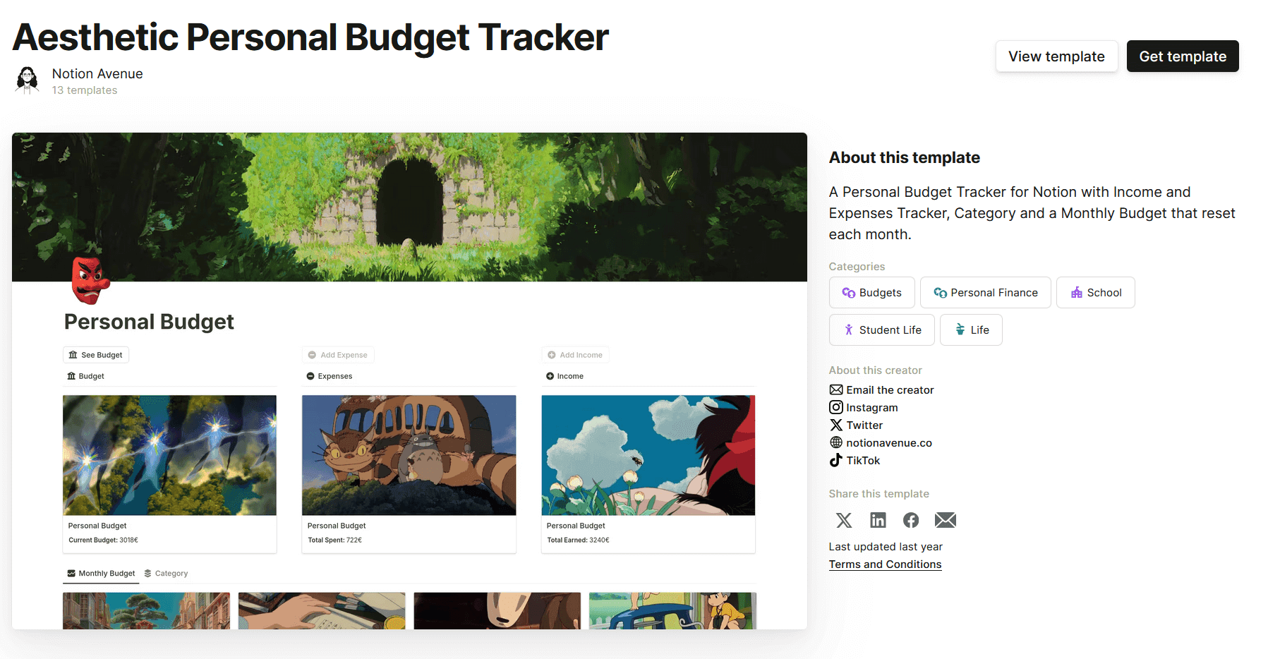 The Aesthetic Personal Budget Tracker is a sleek and organized free Notion template designed to help you manage your finances with ease. With a minimalist and visually pleasing layout, it allows you to track income, expenses, and savings goals effortlessly.