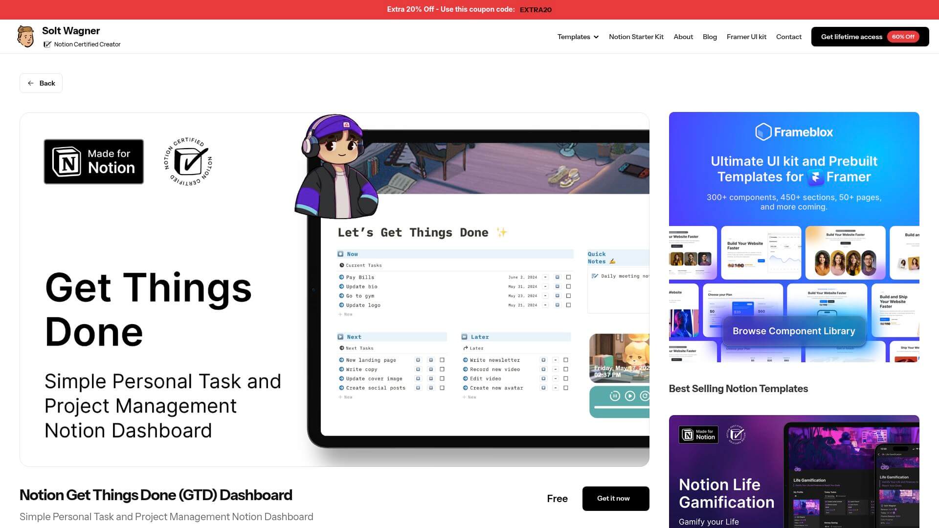 Embrace the GTD method with this dashboard tailored for efficient task and project management. With features like tag organization, quick notes, and to-do lists, the Get Things Done template helps you stay on top of your workload. It's perfect for anyone who wants to streamline their tasks and projects while enjoying the benefits of a well-structured system. This is a must-have for those who love free notion templates that boost efficiency.