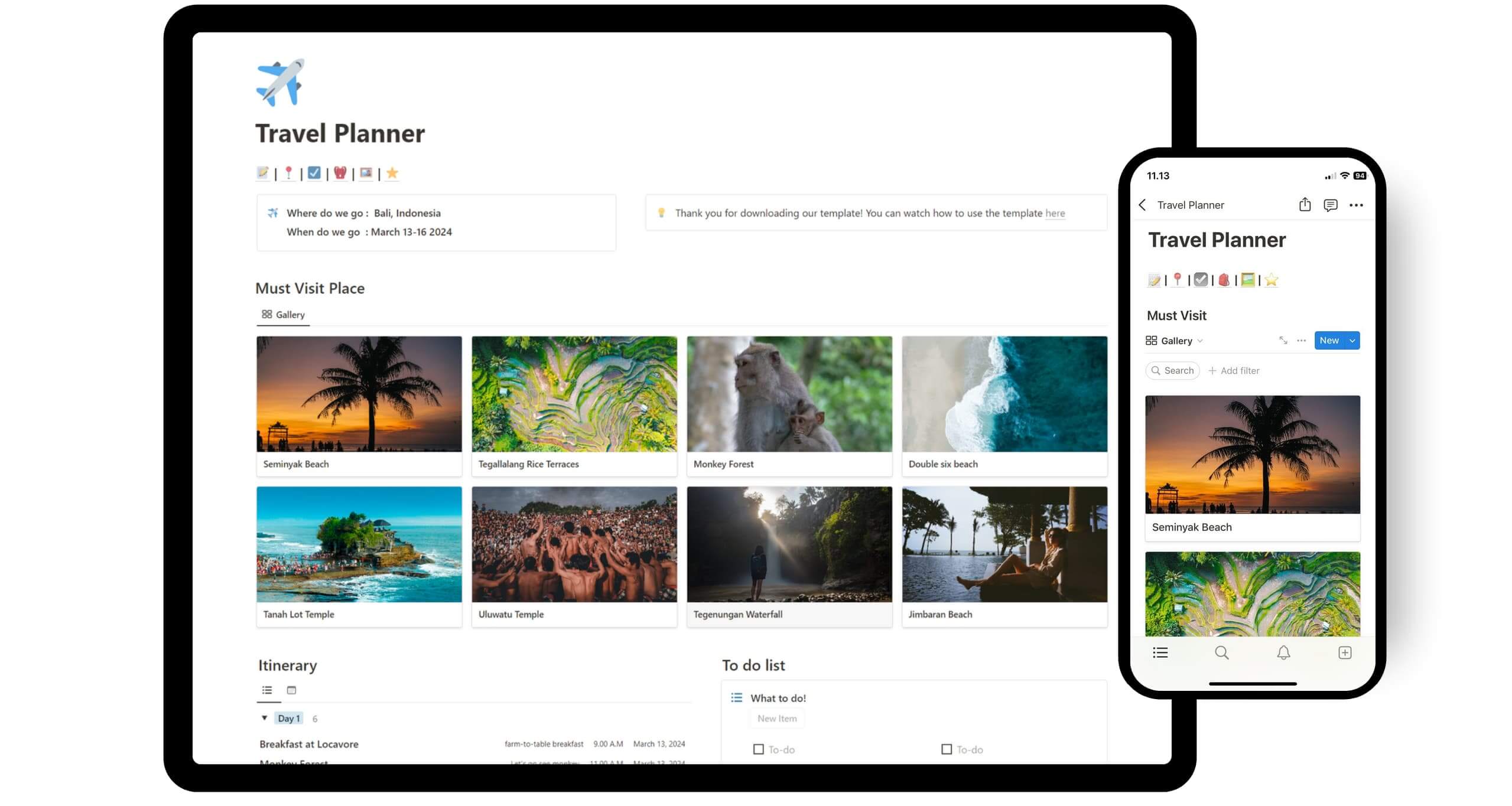 The HeySwitch Travel Planner is a beautifully designed free Notion template that helps you plan and organize your trips effortlessly. With sections for itineraries, budgets, packing lists, and travel notes, this template ensures a smooth and stress-free travel experience.